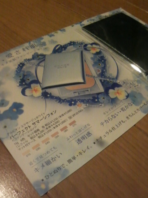 ファンデーションの試供品をいただいた。
