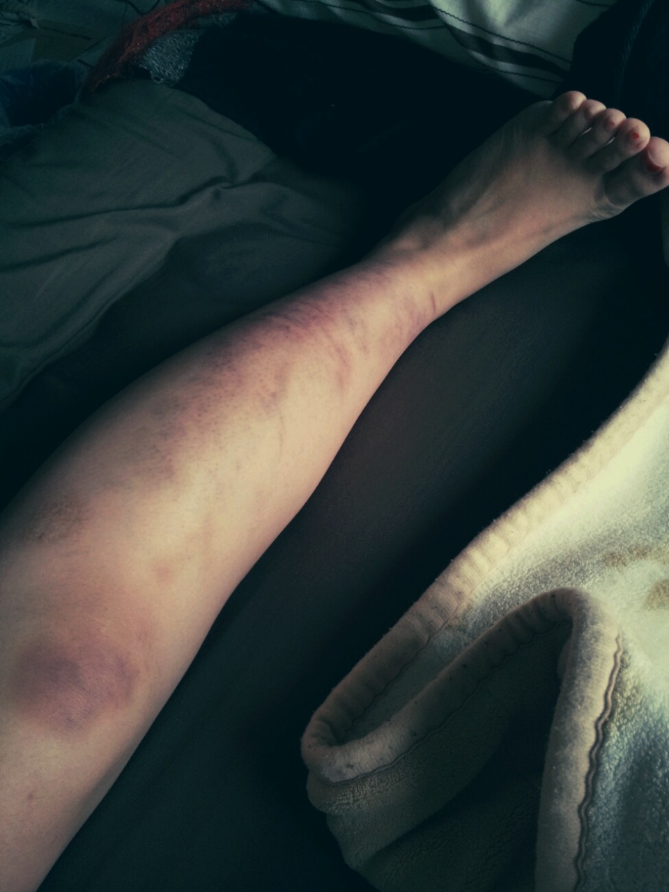 おととい転んだ足の痣。